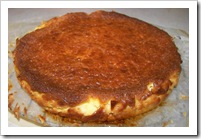 Ψήνουμε σε προθερμασμένο φούρνο, στους 160 βαθμούς κελσίου, για 1.30΄περίπου, ή μέχρι να βγαίνει στεγνή μια οδοντογλυφίδα με την οποία το τρυπάμε το κέντρο του τσιζκέικ.