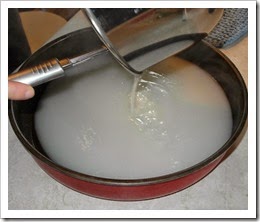 Διαλύουμε το κορν φλάουρ στα 100 γρ. νερό και το ρίχνουμε στο κατσαρολάκι.