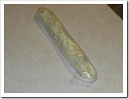 Ανοίγουμε μια μεμβράνη φαγητού και απλώνουμε το αρωματικό βούτυρο κατά μήκος της μιας πλευράς.