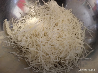 Κρατάμε 3-4 φέτες από τη μοτσαρέλα και κόβουμε την υπόλοιπη σε κυβάκια που προσθέτουμε στα λαχανικά. Εγώ είχα μόνο μια μπάλα μοτσαρέλα και συμπλήρωσα με λίγη φέτα.